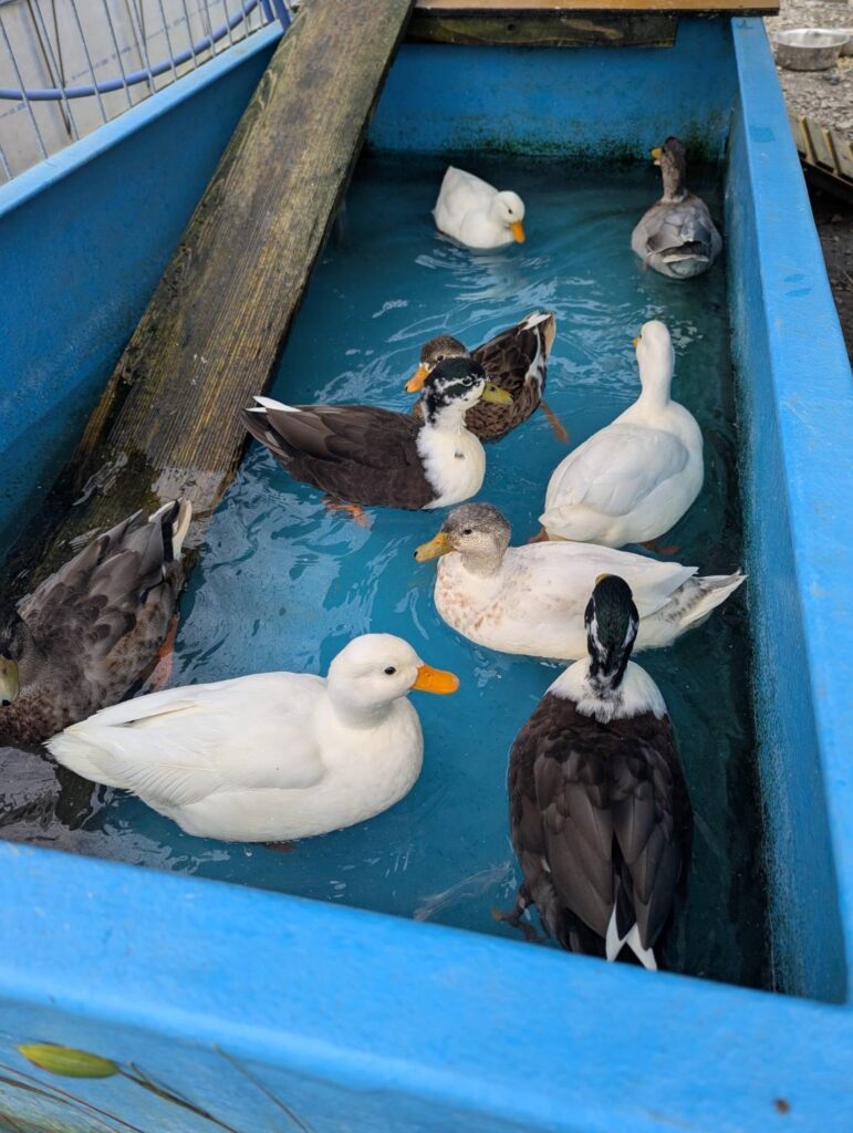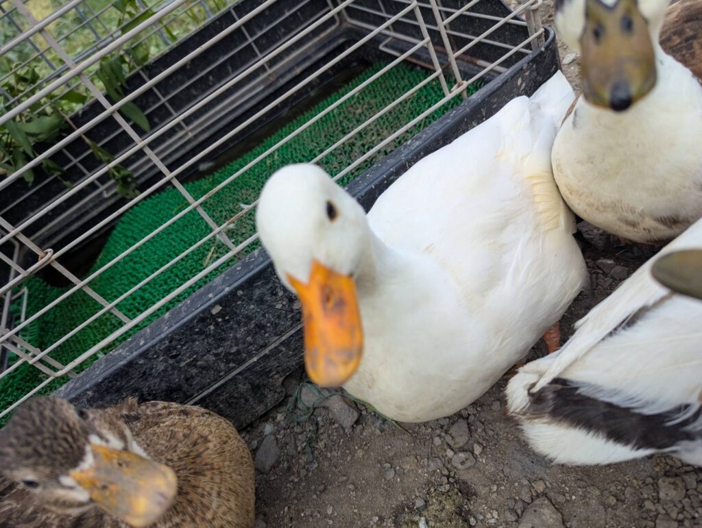 番犬ならぬ、番鳥としてもお馴染みの、オールダック各色が来ます。十羽居ます。とても良く鳴き、頼もしい限りです。人にもそこそこなれた若鳥〜一歳の個体達です。餌は鶏用配合飼料、各種シード、葉物野菜、昆虫や小エビ、小魚など色々と良く食べます。スモールバードブリーダーを中心にあたえています。白がなぜか人気みたいですが、キャリコや白黒、カモカラーなど、同じ血統から色々な羽色が生まれてきます。イタチなどに連れ去られることもありますが、彼らの良いところは、不審者の侵入などに体のサイズ以上に警戒音を発して飼育環境の異変を知らせてくれます。熊が来ても安心。戦う準備ができますので、竹槍や釘付きバット、チェーンソーなどでクマや犯罪者どもと戦えます!飼い主には良く慣れるので、餌の時間や与える方法ですごーく良くなれます。