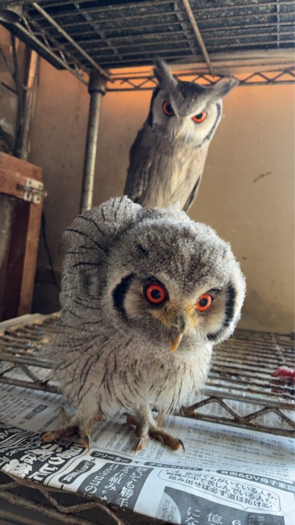 今年、例年に比べても数の少なかったアフリカオオコノハズクのヒナのご紹介です。例年ですと、もっと早く?夏前後に繁殖していましたが、珍しい時期にブリーダーさんのところで繁殖したようです。