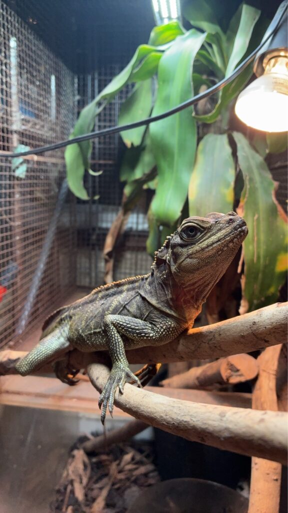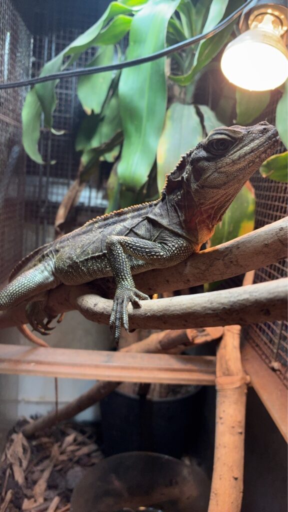 ヒレが綺麗に伸長したらとてもカッコいい昔から流通している人気のホカケトカゲの仲間のご紹介です。必ずと言っていいほど、一度は飼育してみたくなるトカゲです。昆虫もまだまだ食べるサイズですが、バナナやキャベツなどの葉野菜、カボチャやにんじんを薄く切ったものなどもよく食べます。リンゴやサツマイモをスライスしたものも好みます。バランス良く色々な餌を与えた方が良いやうです。特にカルシウムも添加して与えています!