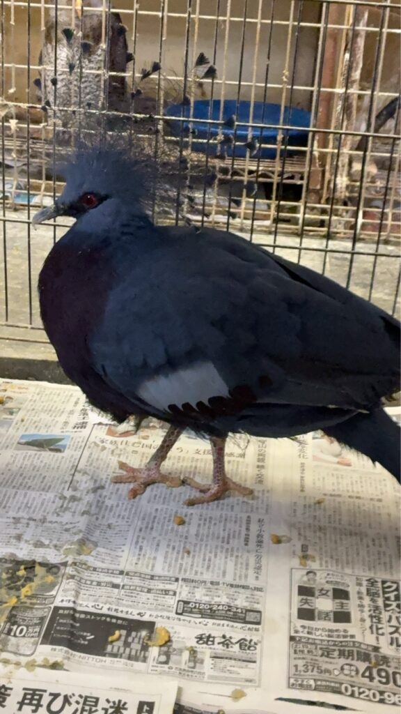 一羽またはペアで少しづつ売れていってます。巨大なカンムリバトも繁殖のシーズンを迎えて、爆音で鳴きながら、頭を上下に揺らし、立派な冠羽をふりふりして発情をむかえました。なかなか鳩の仲間の最大最小級が同時に販売されるのは少ないのでは無いでしょうか?オウギバトは残念ながら推定オス個体のみの販売となりますが、ウスユキバトはまだまだペア取り可能となっています。店頭で繁殖のための巣を入れようか迷っています。餌はスモールバードブリーダーとフレーバーフード、果物などを与えています。オウギバトもマズリーのパロットブリーダーやソフトビルフード、フレーバーフードや果物をメインに与えています。オウギバトは近年高額となりました。